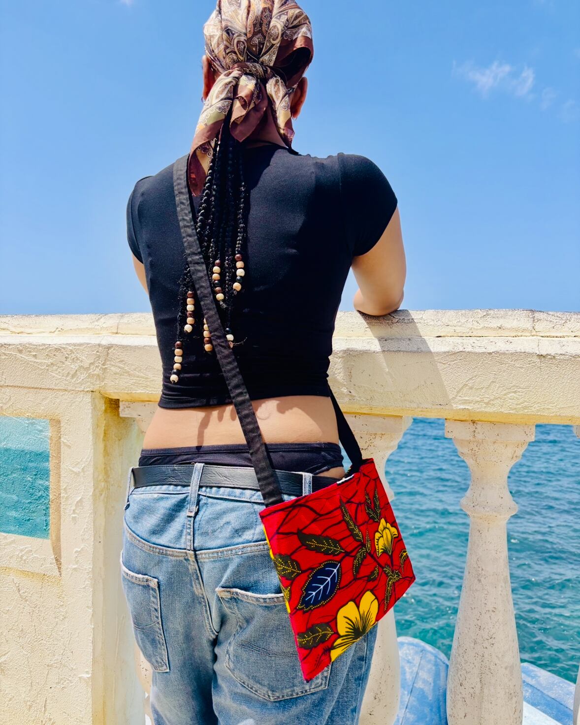 鮮やかなアフリカ布の肩掛けミュゼットバッグです。