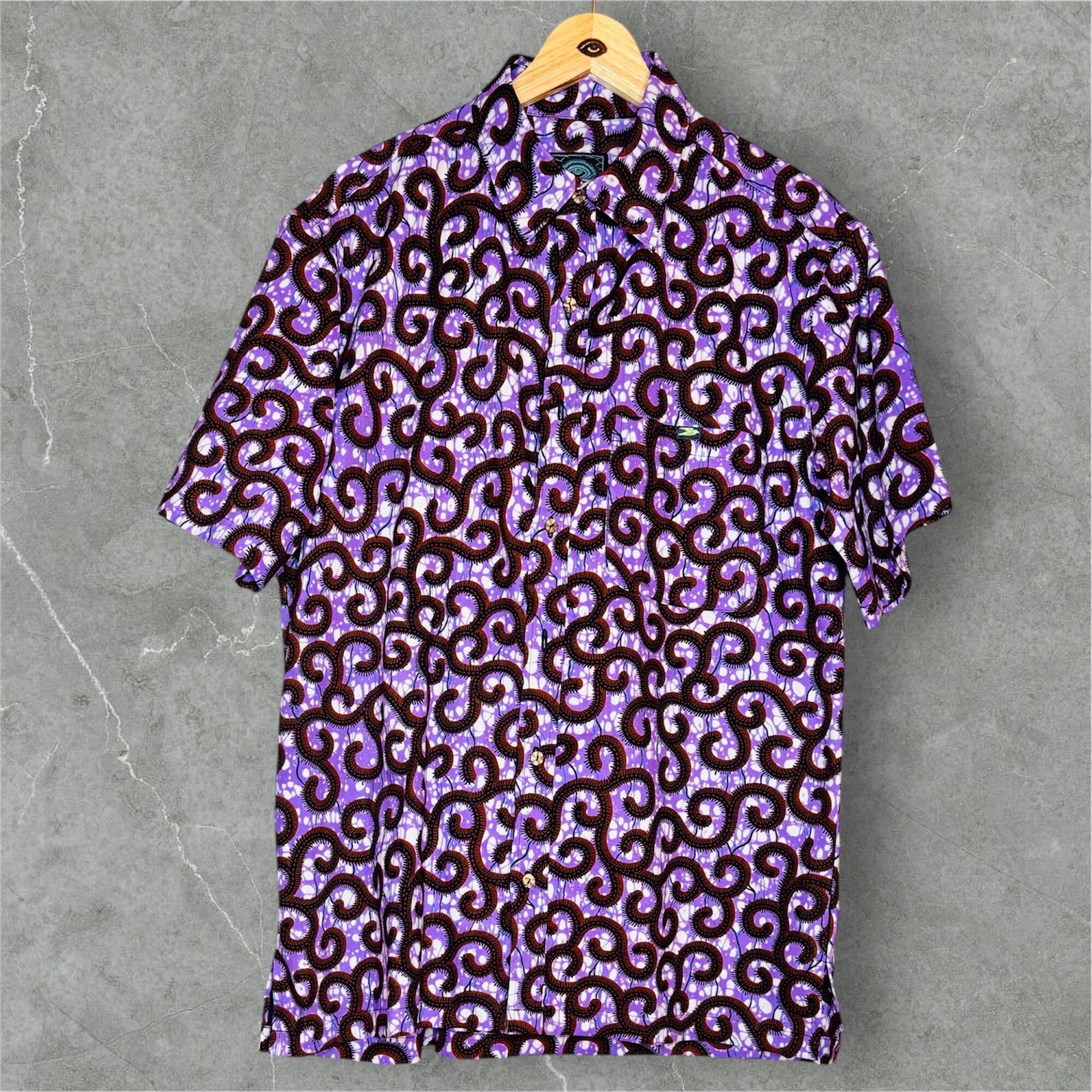 色とりどりのアフリカ布を使ったシャツは、見るだけで気分が明るくなるような華やかさが魅力です。大胆な色使いや個性的な模様は、日常のコーディネートにちょっとした遊び心をプラスしてくれます。