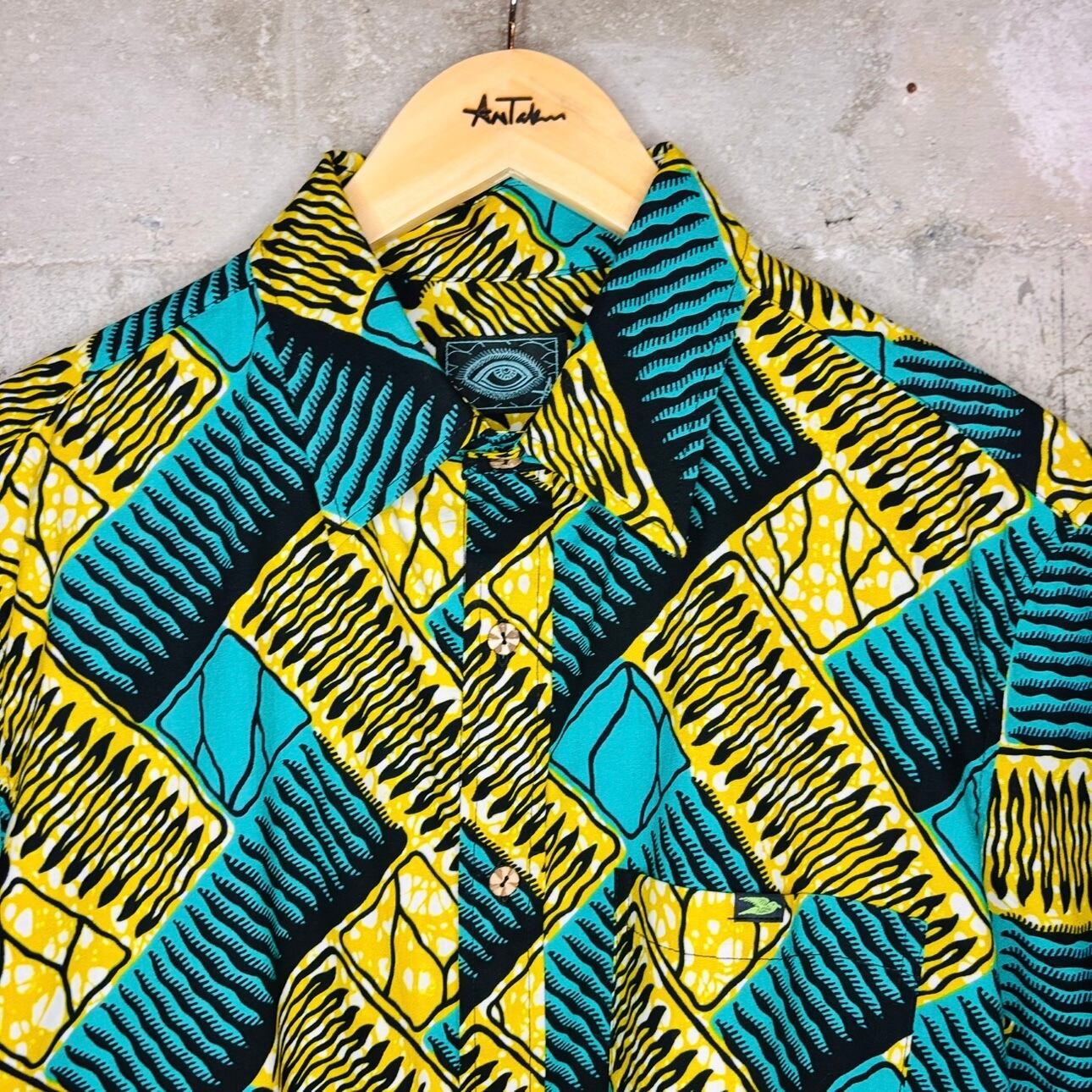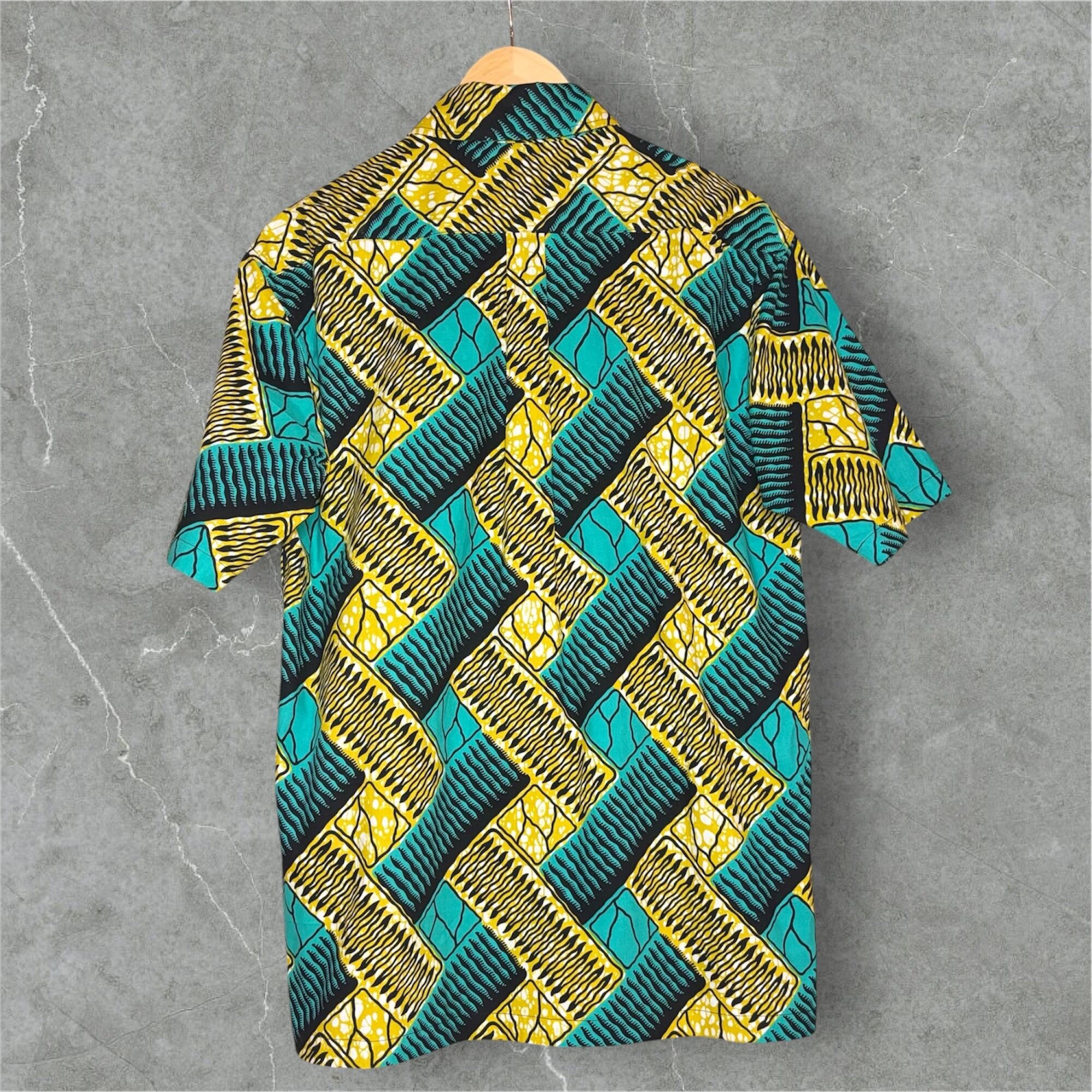 色とりどりのアフリカ布を使ったシャツは、見るだけで気分が明るくなるような華やかさが魅力です。大胆な色使いや個性的な模様は、日常のコーディネートにちょっとした遊び心をプラスしてくれます。